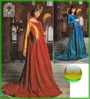 Lord of the Rings is a great source of inspiration for women's dresses. Simplicity 4940 is a good place to start, as is McCall's 4491. alleycatscratch.com breaks down every costume in the movie, and is a fantastic resource for choosing the right pattern, fabrics, trim and accessories - even if you don't want to exactly duplicate a LotR costume, it's full of useful information. A word of warning - while many of Arwen's gowns are ideal for Dawn, avoid the more East Asian looking ones as they are probably better suited to Urizen. Eowyn's White Gown, Coronation Gown, Green Gown and Victory Gown are all ideal, but many of the others belong in Wintermark or the Marches.