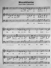- Toasting song example: Benia's Mravalzhamier - difficult, 3 parts.