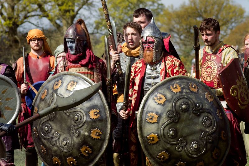 Kohan sometimes wear fearsome facepaint into battle. Tito and Vito i Guerra (Luke Wenlock and Johnny Fisher) in the Freeborn battle-line. Image by Beth Dooner